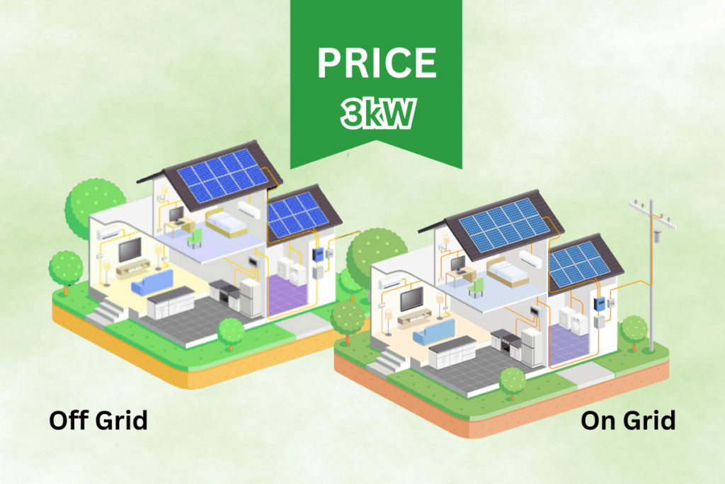 A 3kW on-grid system on average can range approximately between Rs. 2,13,300 to 3,59,296, depending on the selected components.