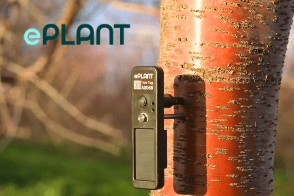 ePlant’s AI-based TreeTags monitors plant growth and response to its surroundings. The data can help understand water stress, growth, and vigor. It also has sensors for measuring light, humidity, temperature, and tilt from vertical.