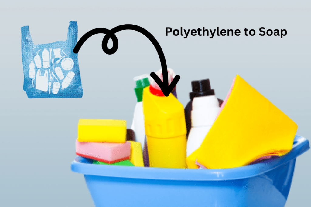 At Virginia Tech, through an innovative technique, researchers convert Polyethylene into soap through upcycling. This discovery is based on the unexpected similarity between polyethylene and fatty acids, which are used to make soap. The team successfully created short-chain polyethylene molecules by breaking down polyethylene chains using a new temperature-gradient thermolysis process. This can now be used to make soap.